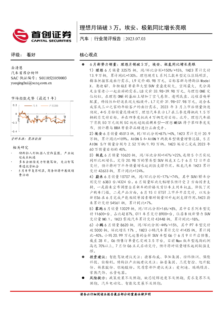 首创证券:汽车行业简评报告:理想月销破3万,埃安、极氪同比增长亮眼.pdf