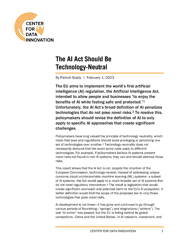 数据创新中心:2023人工智能法案应该是技术中立的报告(英文版).pdf