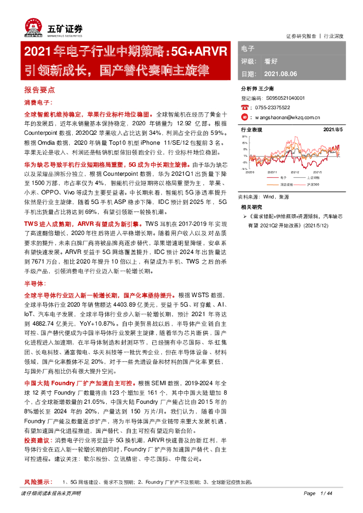 五矿证券:2021年电子行业中期策略:5G+ARVR引领新成长,国产替代奏响主旋律.pdf