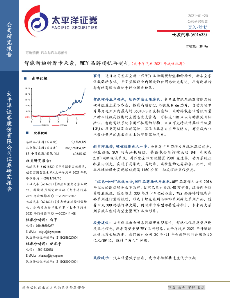 太平洋证券:长城汽车(601633)-智能新物种摩卡来袭,WEY品牌扬帆再起航(太平洋汽车2021年战略推荐).pdf