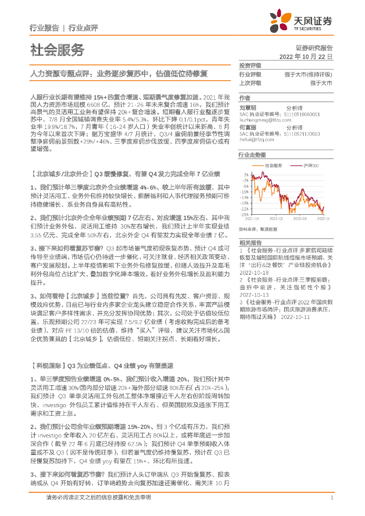 天风证券:社会服务:人力资源专题点评:业务逐步复苏中,估值低位待修复.pdf