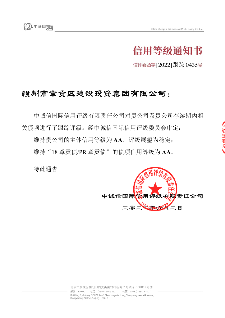 中诚信:2018年赣州市章贡区建设投资集团有限公司公司债券2022年度跟踪评级报告.pdf