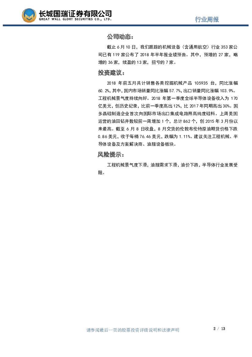 长城国瑞证券:机械设备行业周报2018年第23期(总第94期):全球半导体设备收入创历史记录,5月挖掘机销量同比增长60.2%.pdf