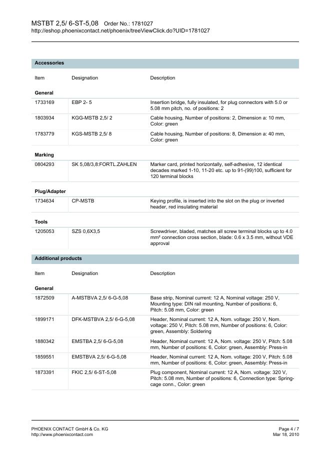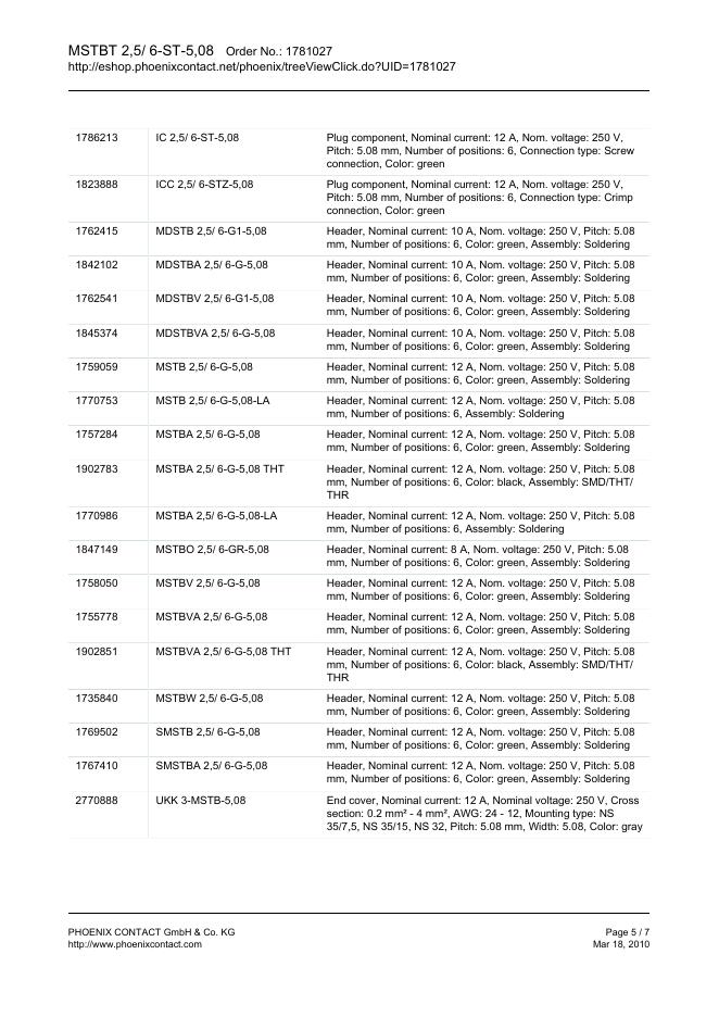 PHOENIX CONTACT MSTBT 2,5/ 6-ST-5,08 Order No.: 1781027 The figure shows a 10-position version of the product 数据手册.pdf