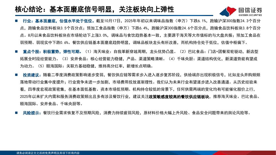 国信证券:食品饮料行业专题:餐饮供应链板块梳理:基本面磨底信号明显,关注板块向上弹性.pdf