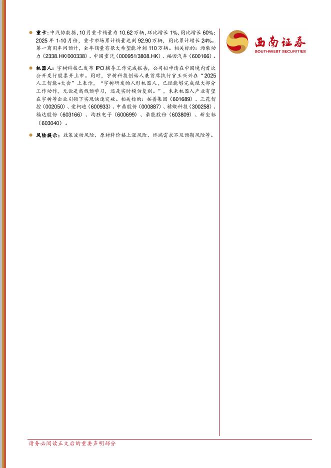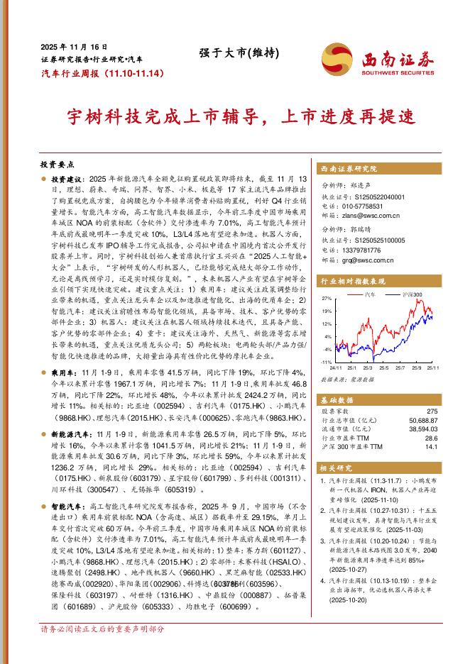 西南证券:汽车行业周报:宇树科技完成上市辅导,上市进度再提速.pdf