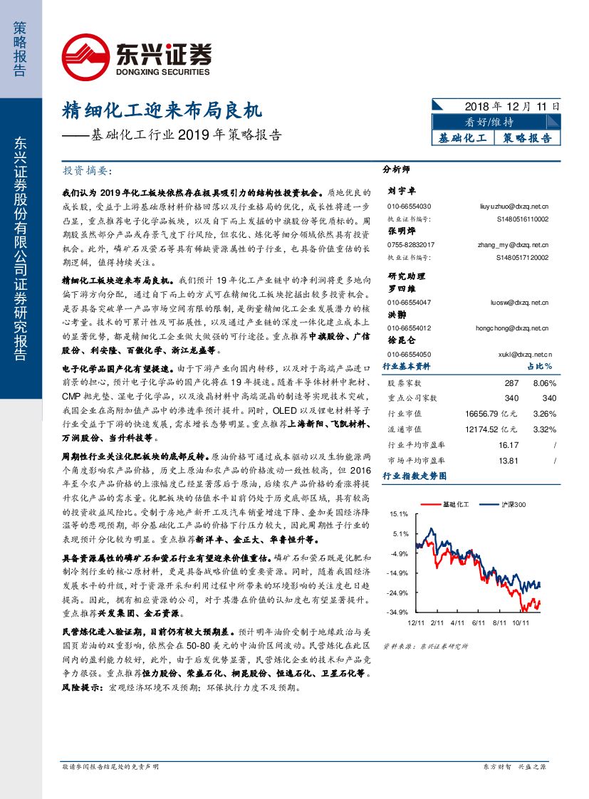 东兴证券:基础化工行业2019年策略报告:精细化工迎来布局良机.pdf