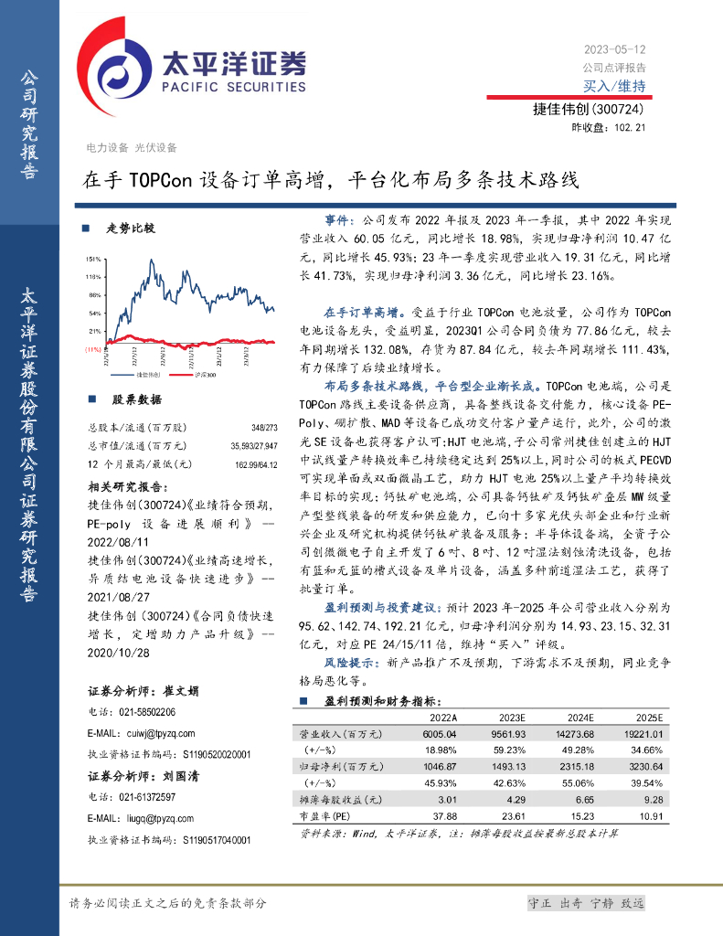 太平洋证券:捷佳伟创(300724)-在手TOPCon设备订单高增,平台化布局多条技术路线.pdf