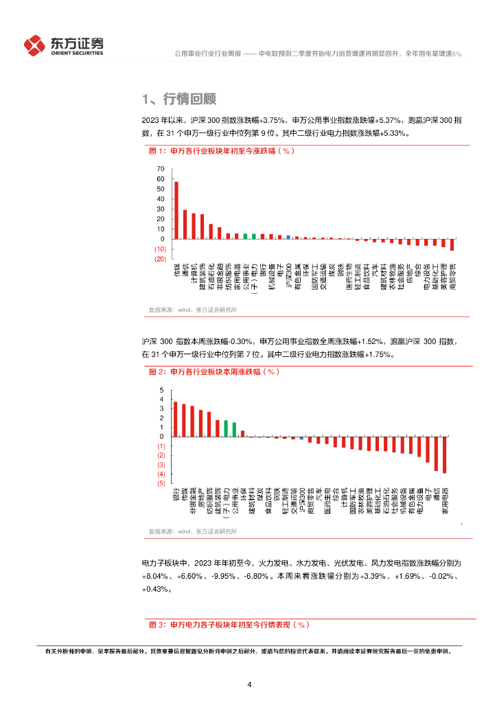 东方证券:公用事业行业周报:中电联预测二季度开始电力消费增速将明显回升,全年用电量增速6%.pdf