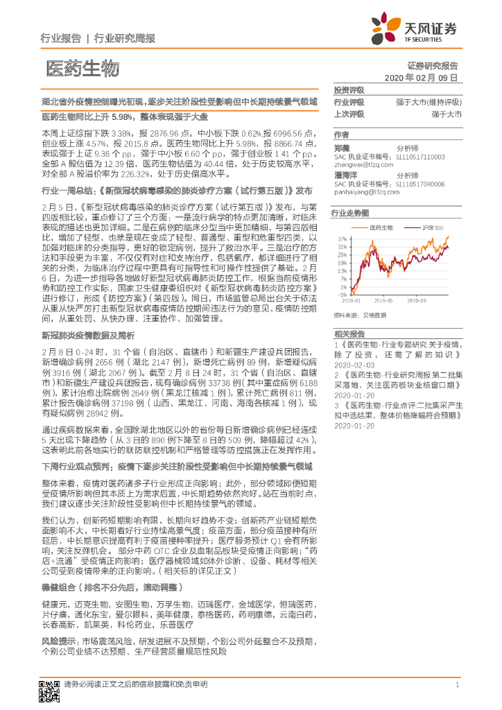 天风证券:医药生物行业研究周报:湖北省外疫情控制曙光初现,逐步关注阶段性受影响但中长期持续景气领域.pdf