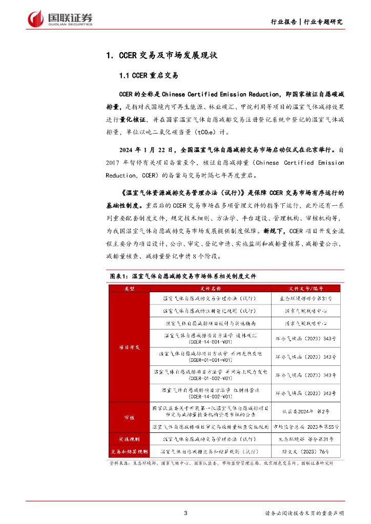 国联证券:环保行业前瞻研究:CCER市场正式重启,趋势与影响.pdf