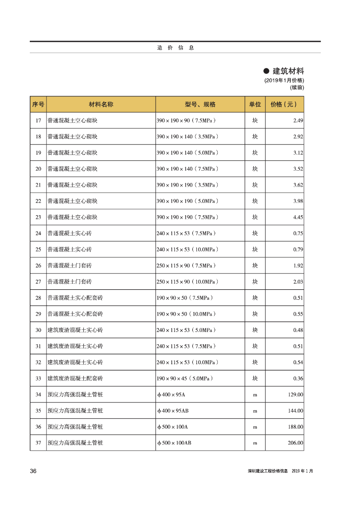 《深圳建设工程价格信息》2019年1月造价信息.pdf