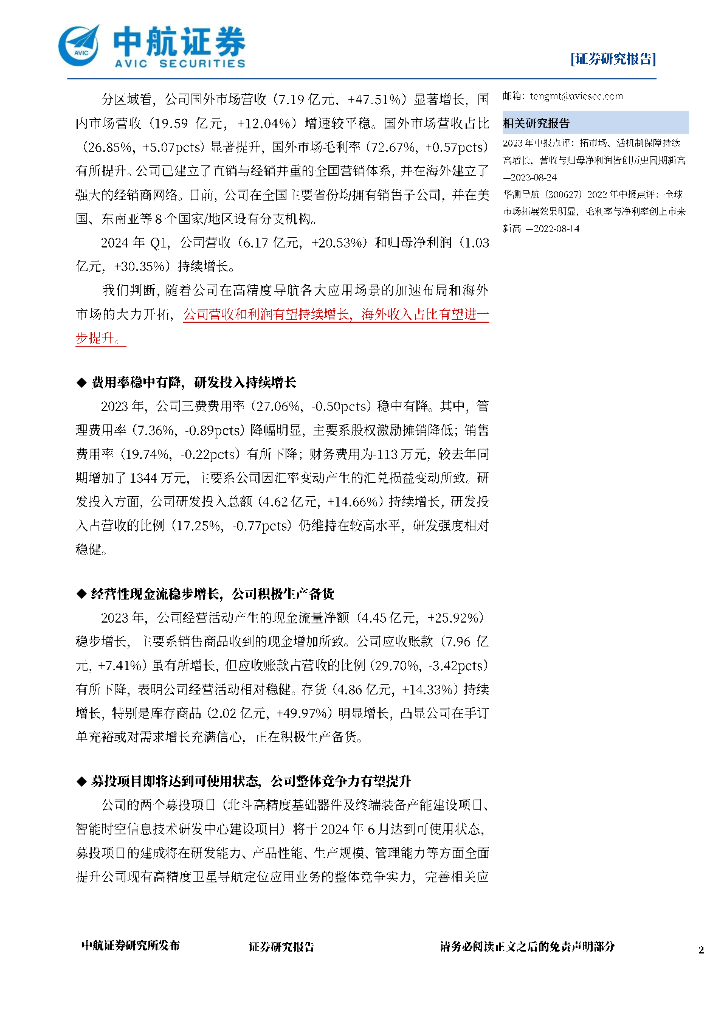 中航证券:华测导航(300627)2023年报及2024Q1点评:毛利率创IPO以来新高,海外业务占比快速提升.pdf