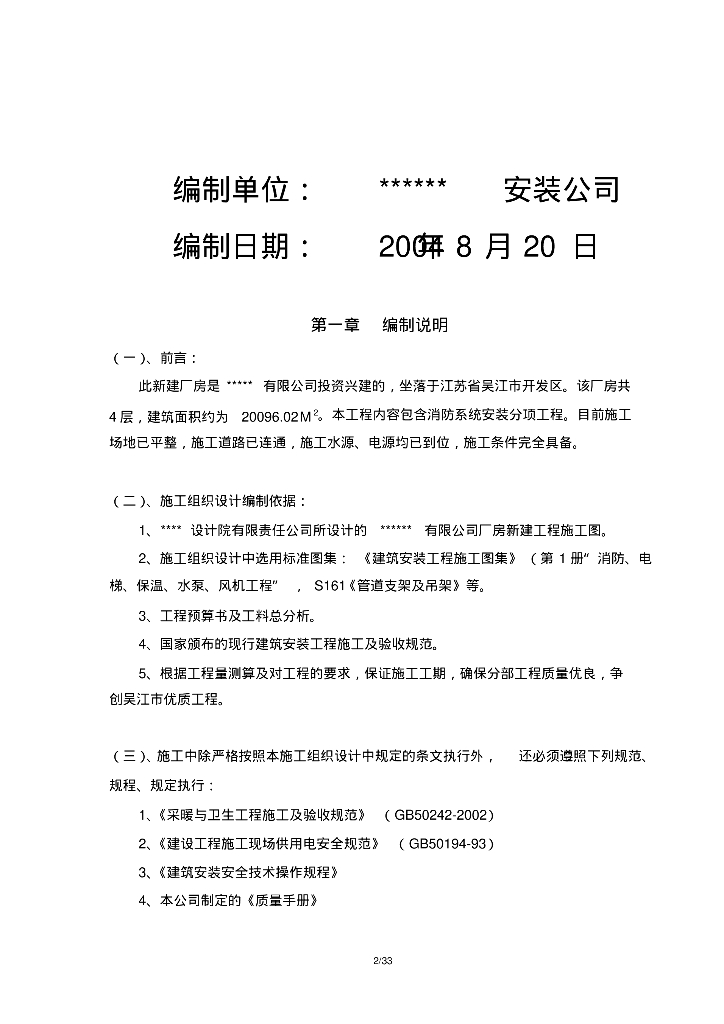 吴江市某有限公司新建厂房消防工程施工组织设计33页.pdf