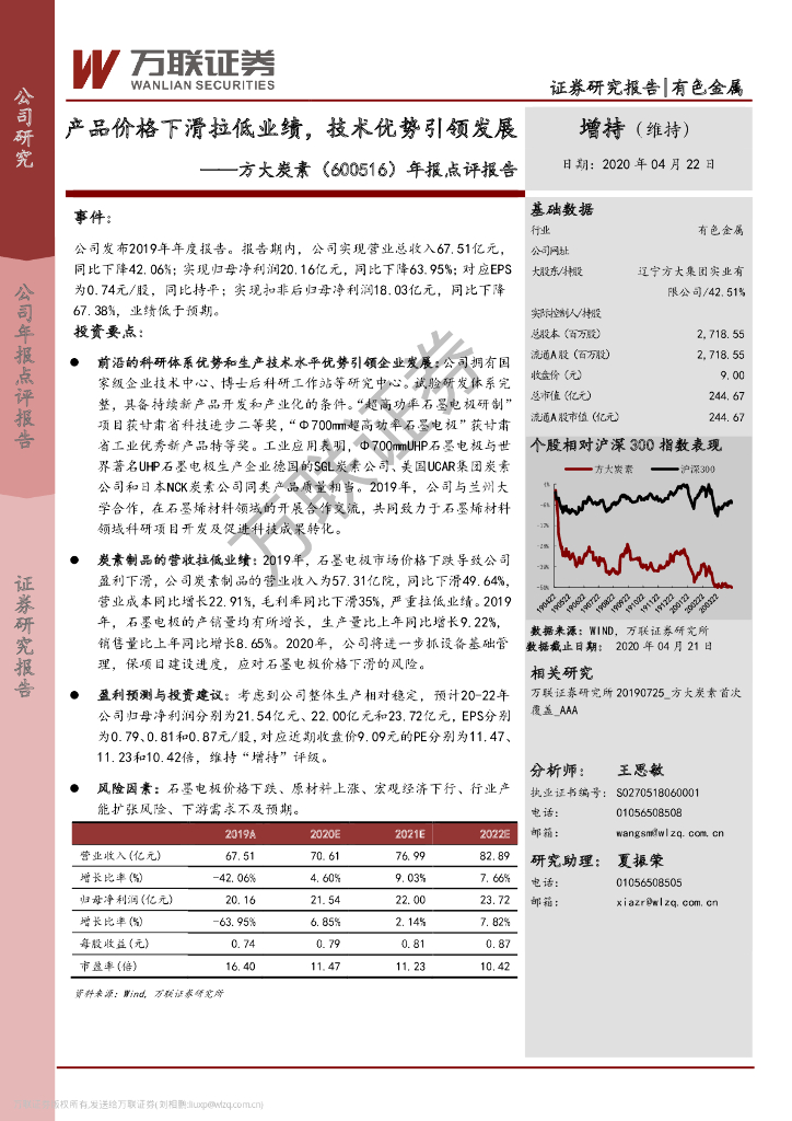 万联证券:方大炭素(600516)-年报点评报告:产品价格下滑拉低业绩,技术优势引领发展.pdf