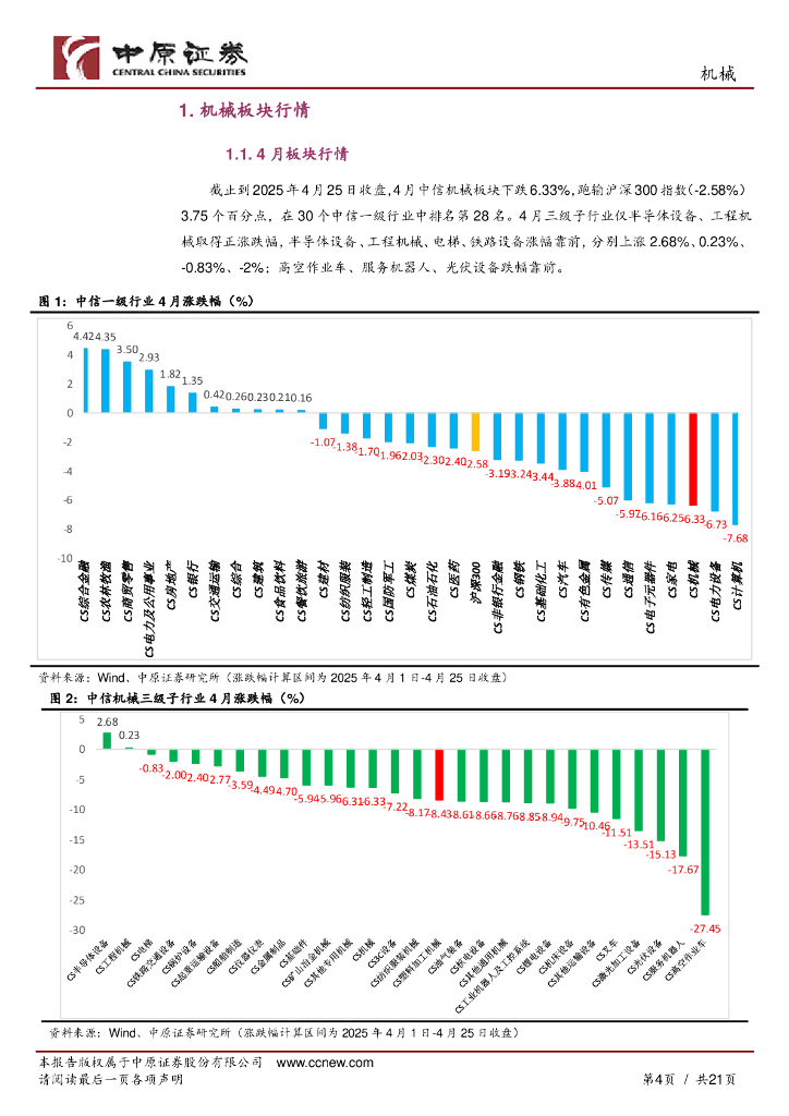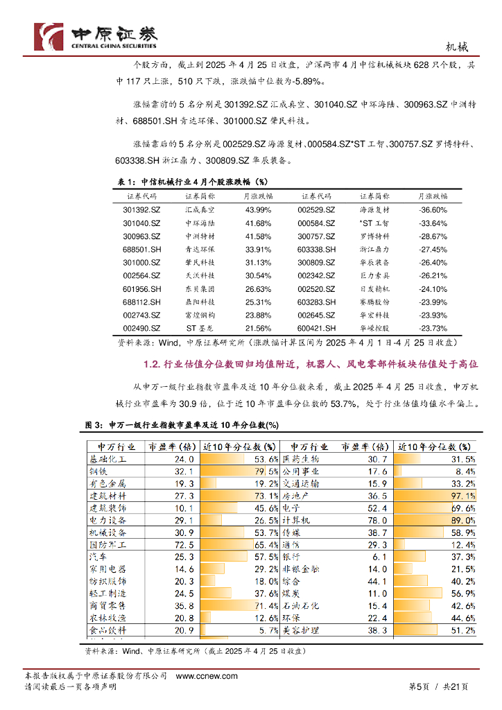 中原证券:机械行业月报:聚焦行业基本面向好的工程机械、机器人、机床、高铁设备等方向.pdf