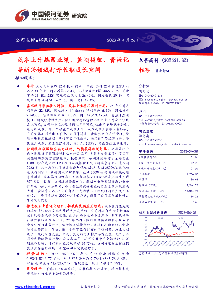 中国银河:久吾高科(300631)-成本上升拖累业绩,盐湖提锂、资源化等新兴领域打开长期成长空间.pdf