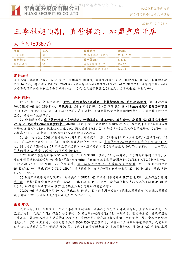 华西证券:太平鸟(603877)-三季报超预期,直营提速、加盟重启开店.pdf