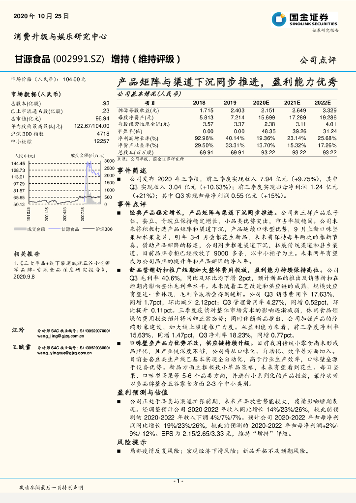 国金证券:甘源食品(002991)-产品矩阵与渠道下沉同步推进,盈利能力优秀.pdf