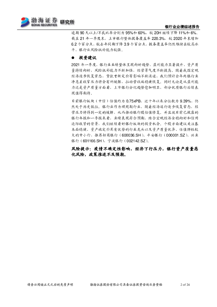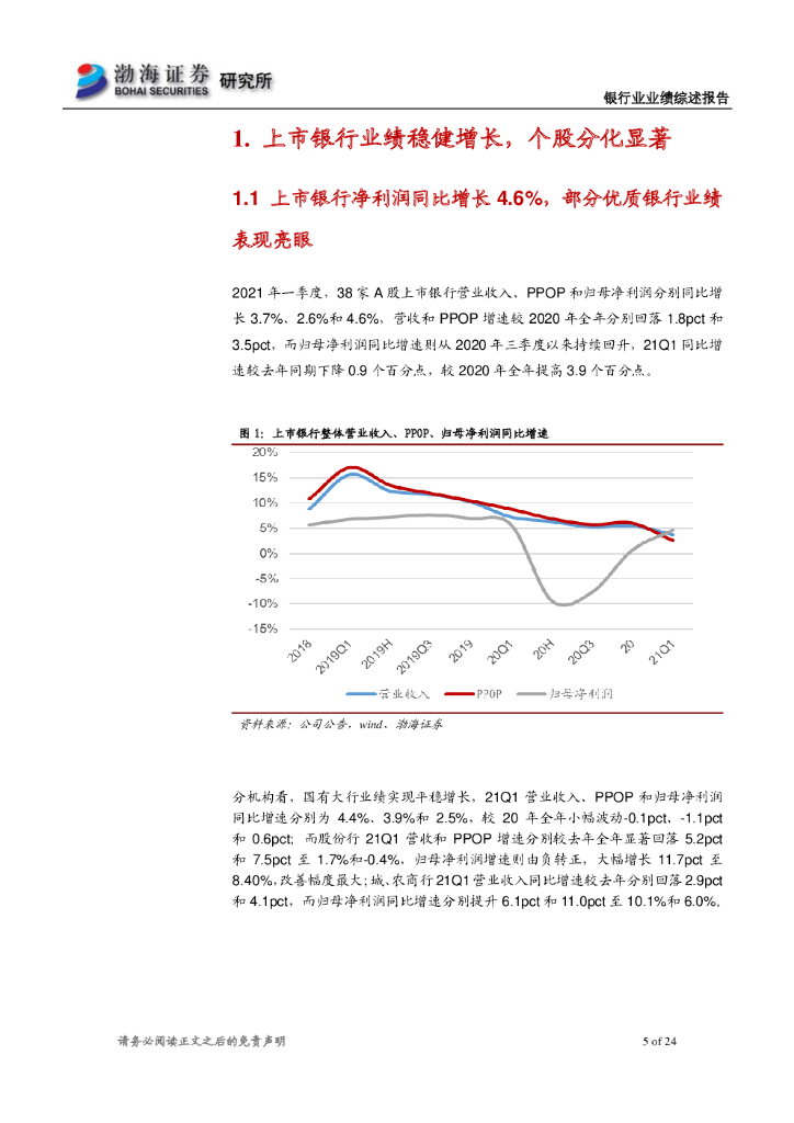 渤海证券:银行业2020年年报及2021年一季报业绩综述:业绩稳健增长,个股分化显著.pdf