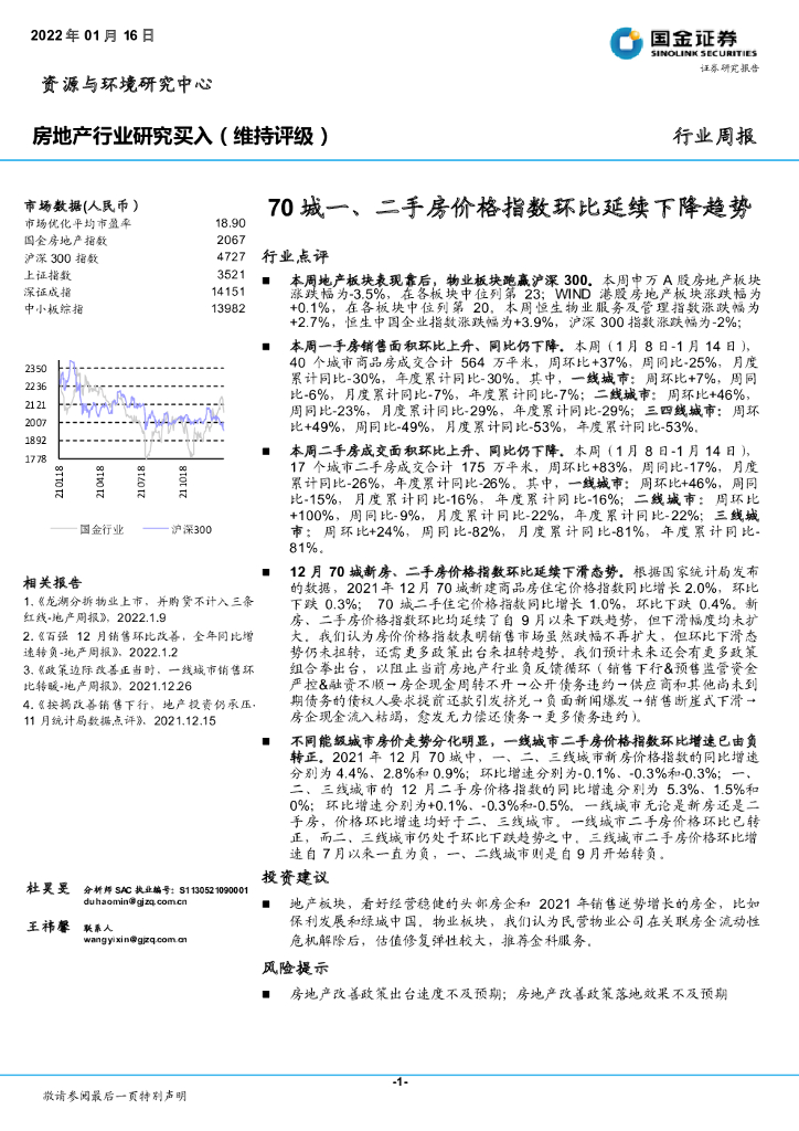 国金证券:房地产行业研究:70城一、二手房价格指数环比延续下降趋势.pdf