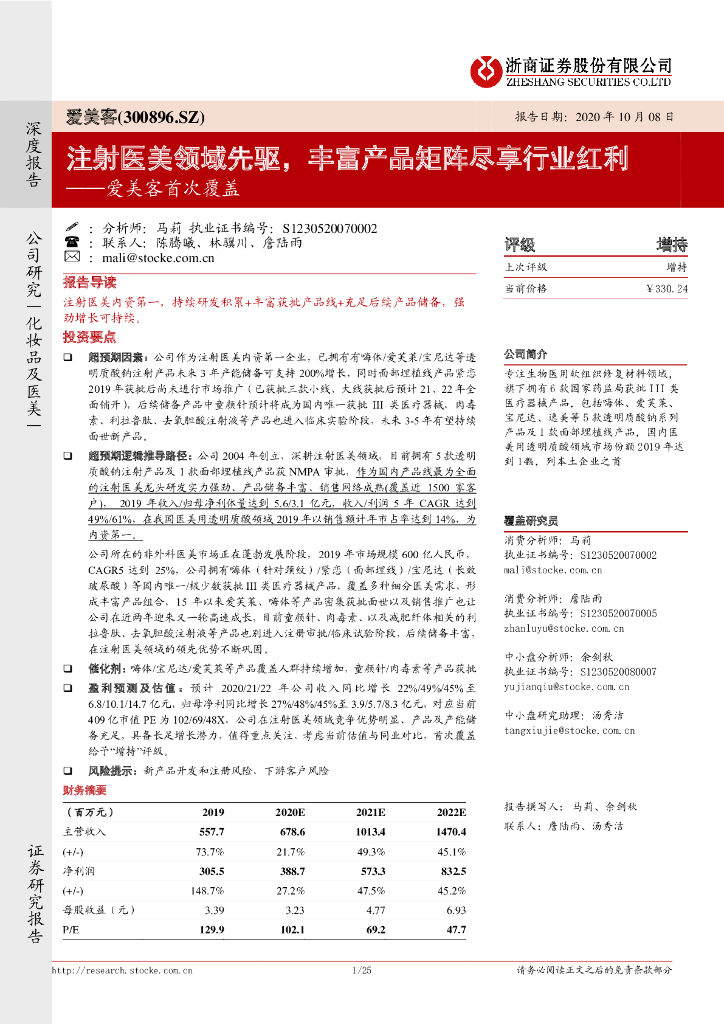 浙商证券:爱美客首次覆盖:注射医美领域先驱,丰富产品矩阵尽享行业红利.pdf