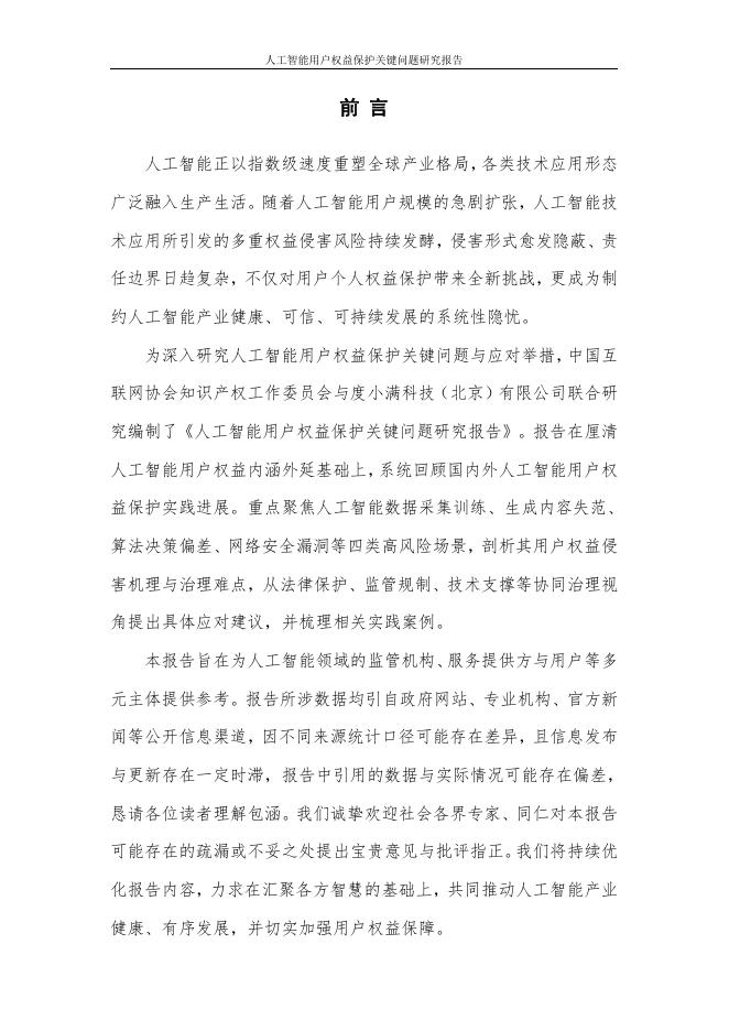 中国互联网协会&度小满科技:2026年人工智能用户权益保护关键问题研究报告.pdf