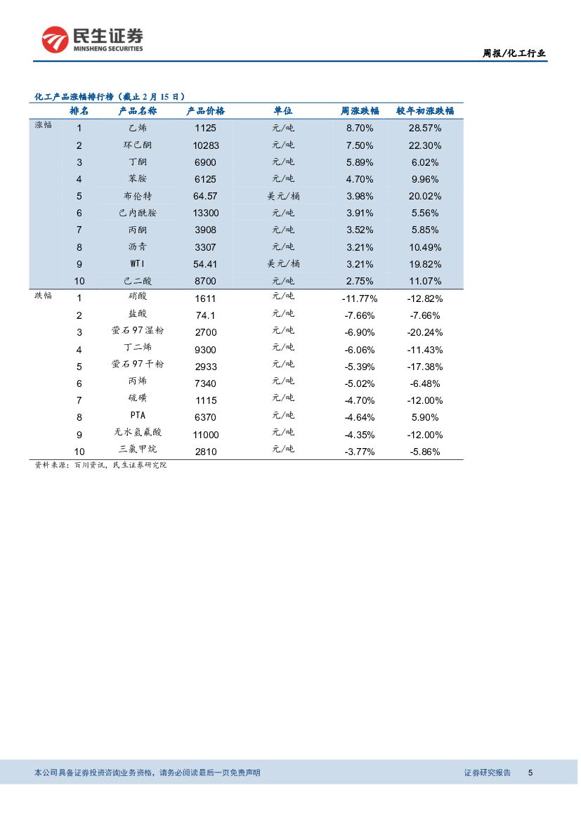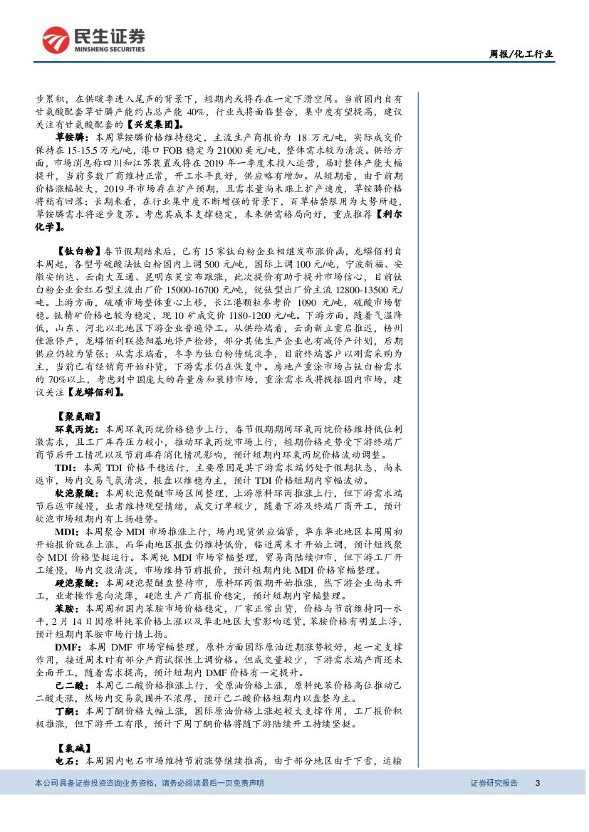 民生证券:基础化工周报:国际油价稳中有升,MDI持续上涨.pdf