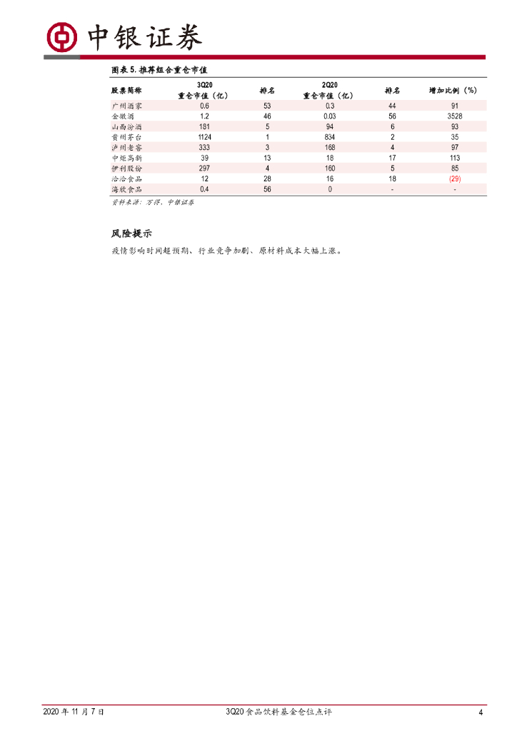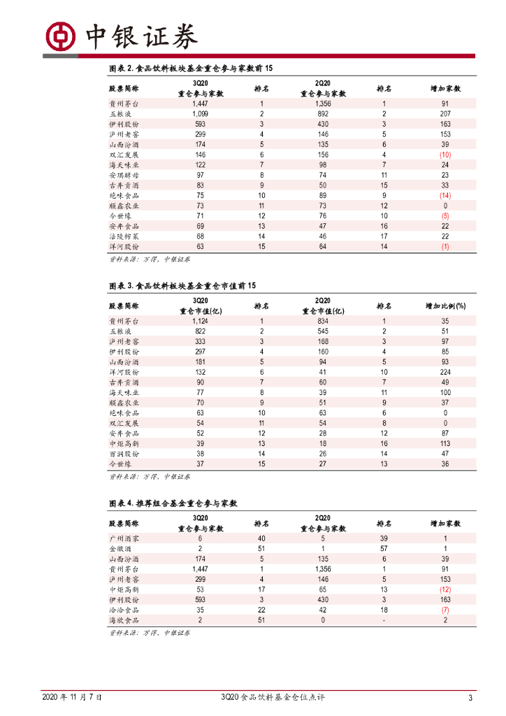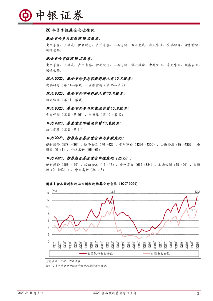 中银证券:3Q20食品饮料基金仓位点评:白酒持续受到青睐,食品仓位上升.pdf