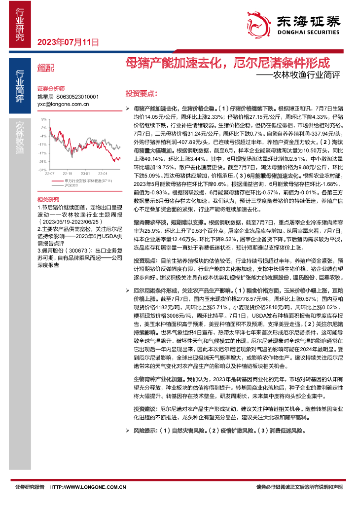 东海证券:农林牧渔行业简评:母猪产能加速去化,厄尔尼诺条件形成.pdf