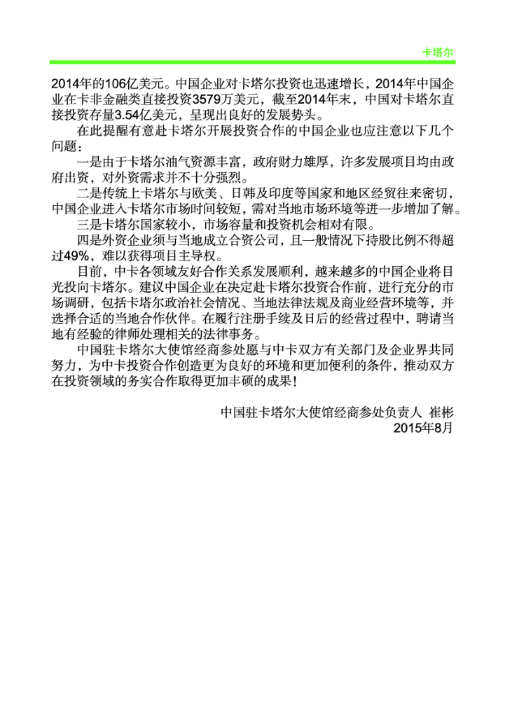 商务部:对外投资合作国别(地区)指南:卡塔尔(2015年版).pdf