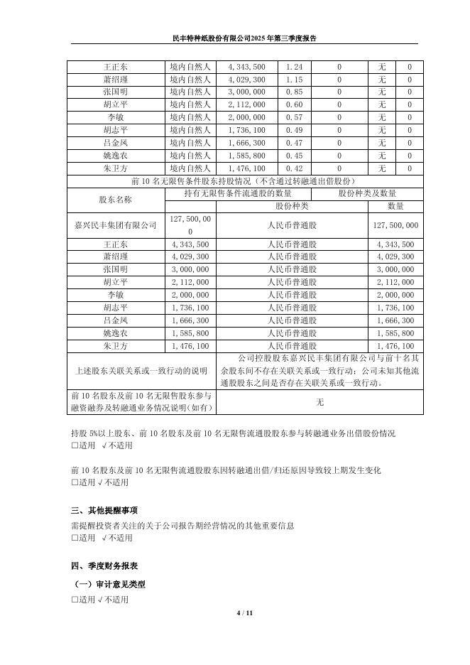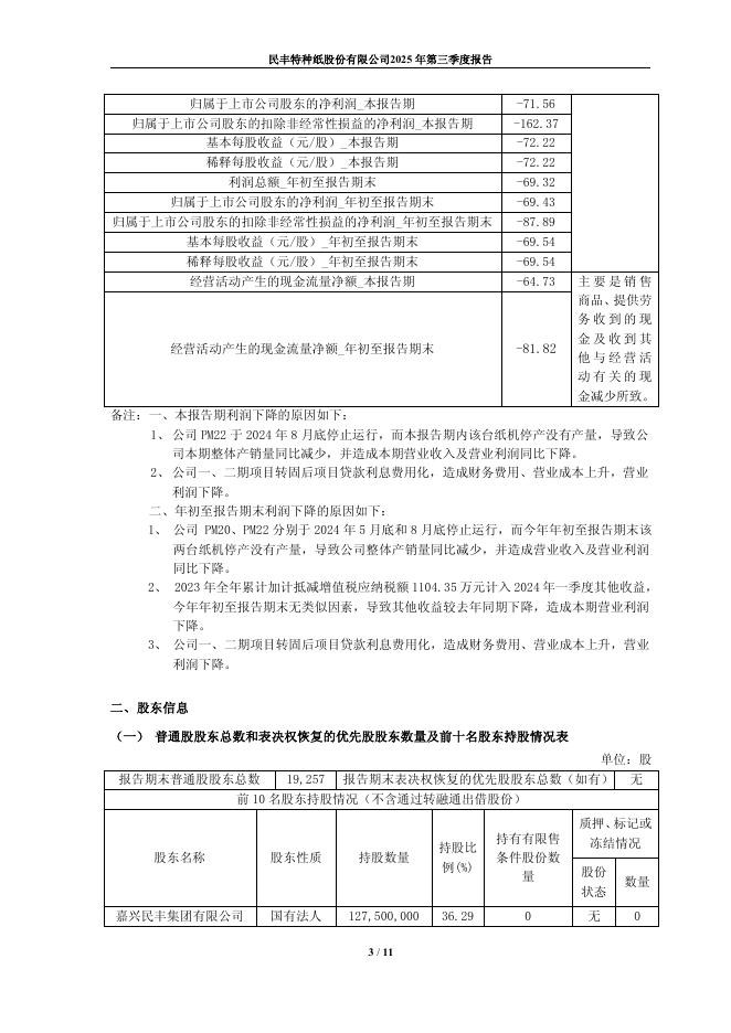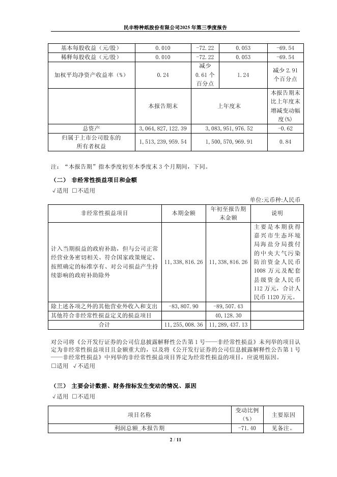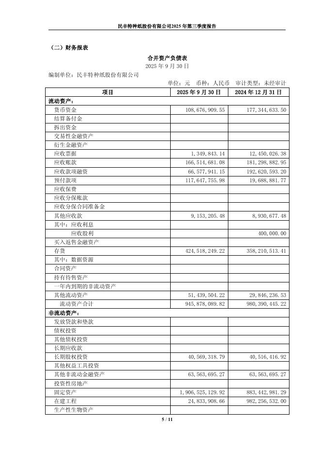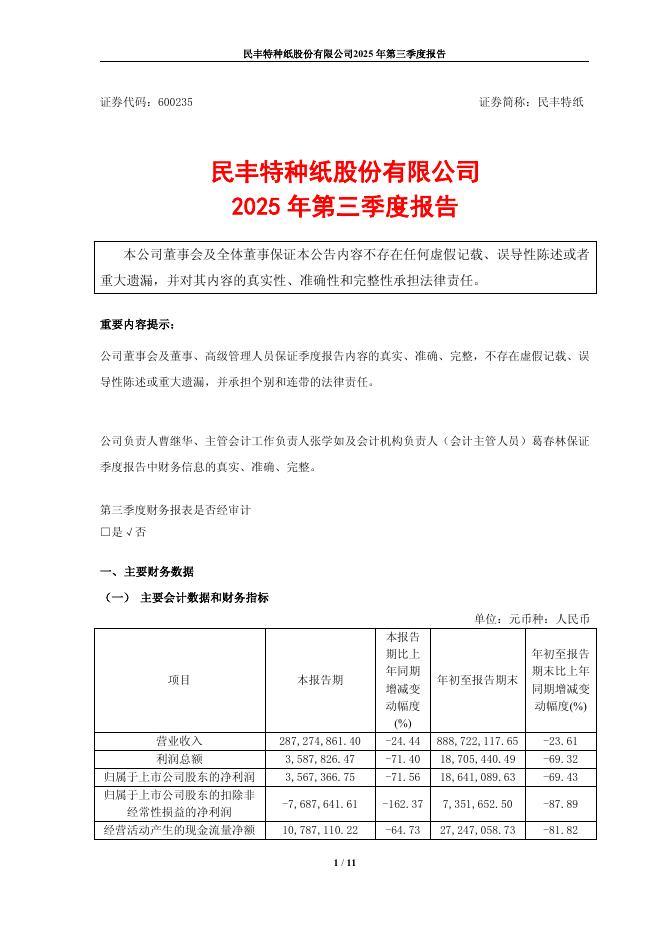 600235-民丰特纸:民丰特纸2025年第三季度报告.pdf