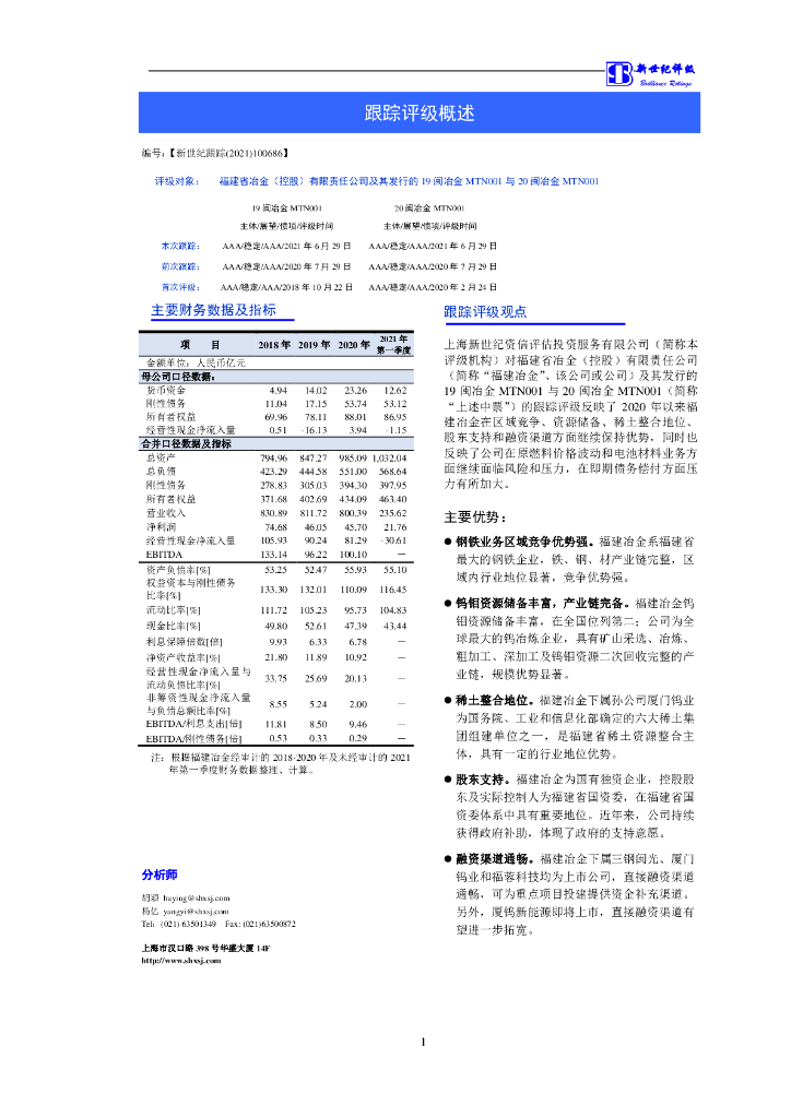 新世纪:福建省冶金(控股)有限责任公司2021年度跟踪评级报告.pdf
