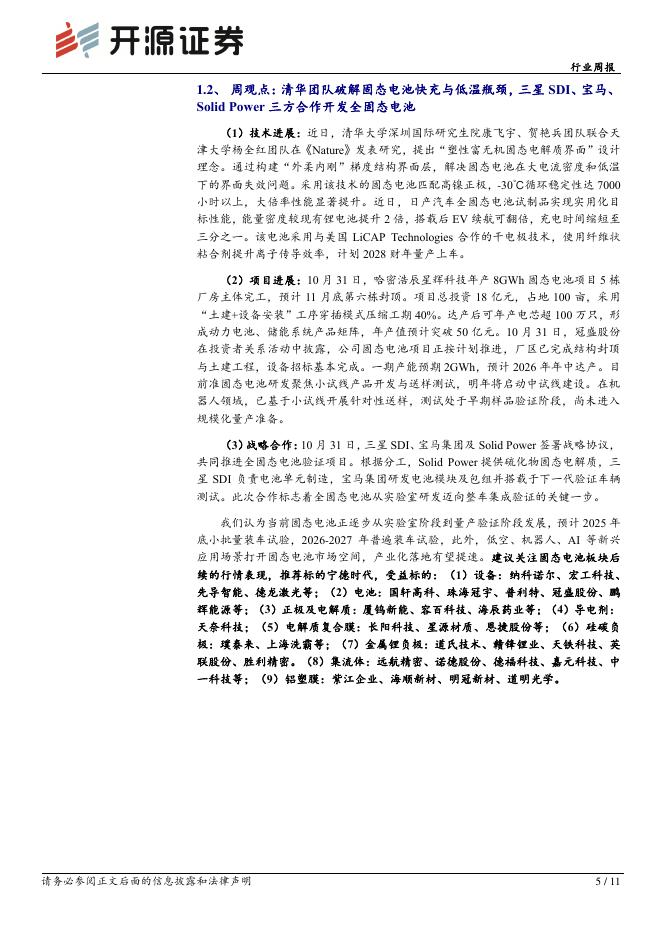 开源证券:电力设备行业固态电池行业周报(第二十一期):清华团队破解固态电池快充与低温瓶颈,三星SDI、宝马、SolidPower三方合作开发全固态电池.pdf