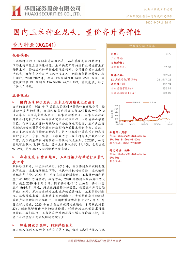 华西证券:登海种业(002041)-国内玉米种业龙头,量价齐升高弹性.pdf