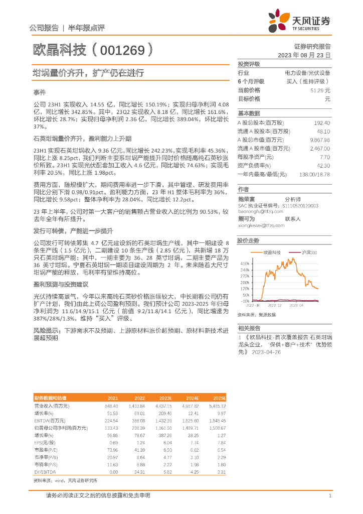 天风证券:欧晶科技(001269)-坩埚量价齐升,扩产仍在进行.pdf