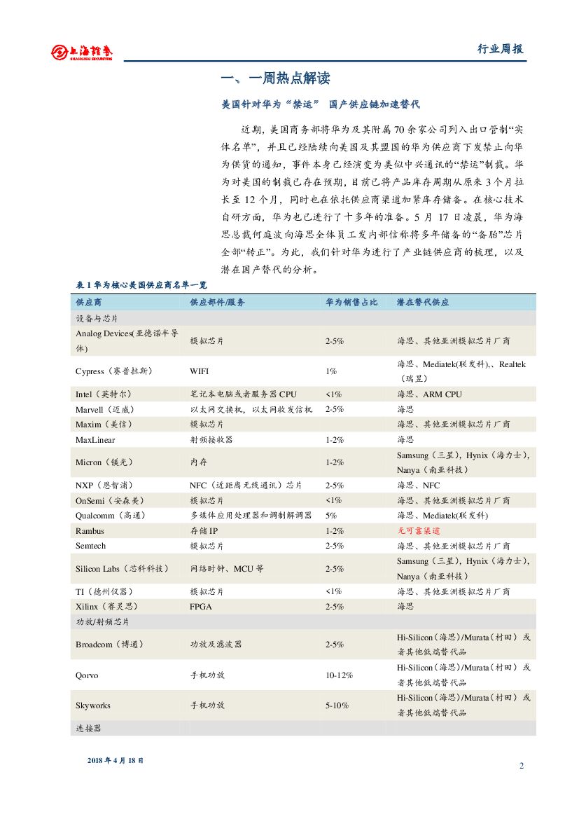 上海证券:电子行业周报:美国针对华为“禁运”国产供应链加速替代.pdf
