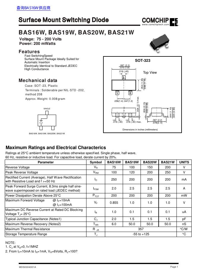 COMCHIP BAS16W, BAS19W, BAS20W, BAS21W 数据手册.pdf