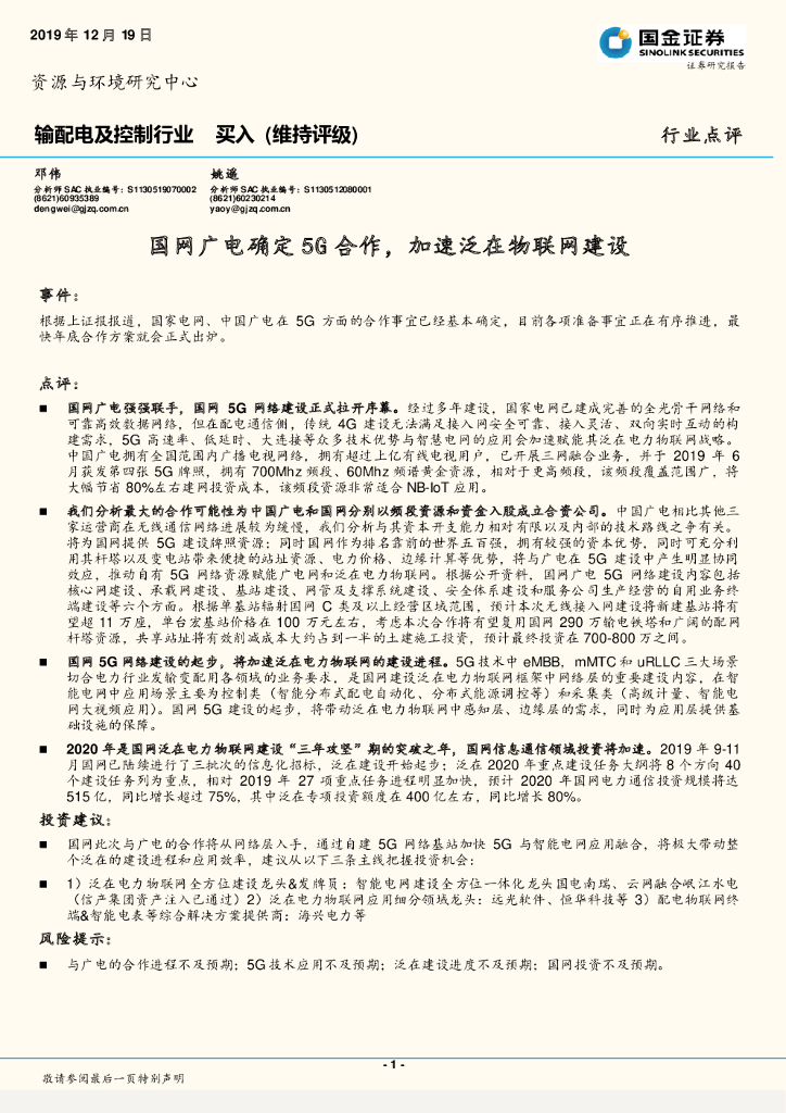 国金证券:输配电及控制行业:国网广电确定5G合作,加速泛在物联网建设.pdf