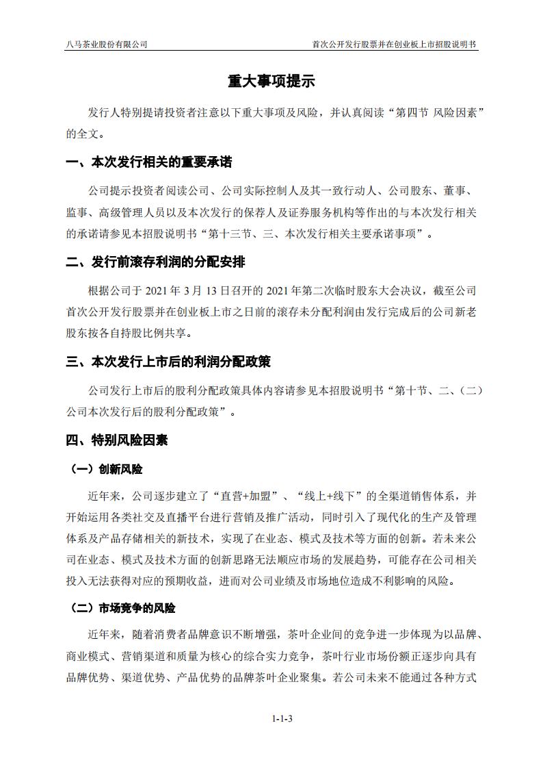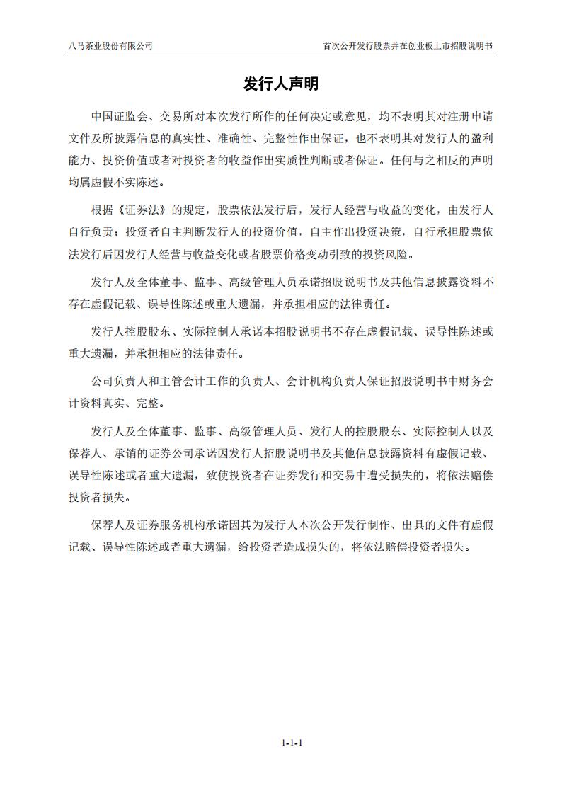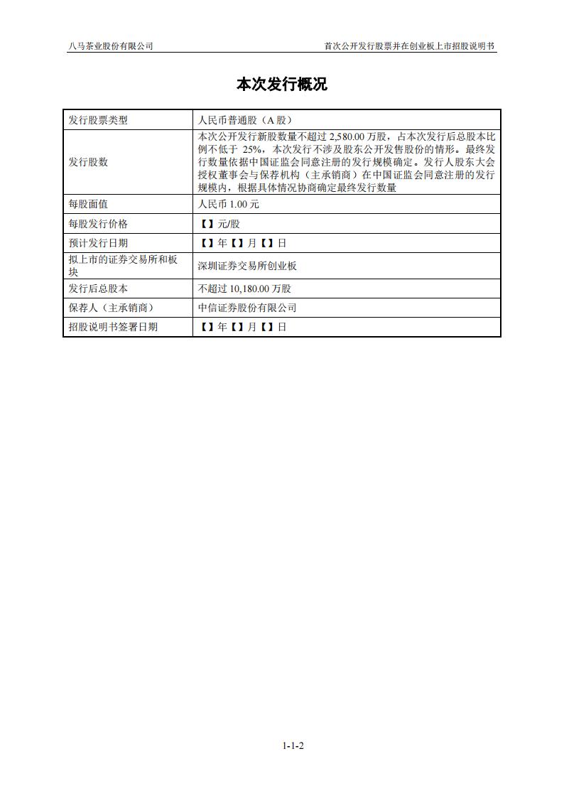 八马茶业创业板IPO上市招股说明书:冲击A股茶叶第一股.pdf