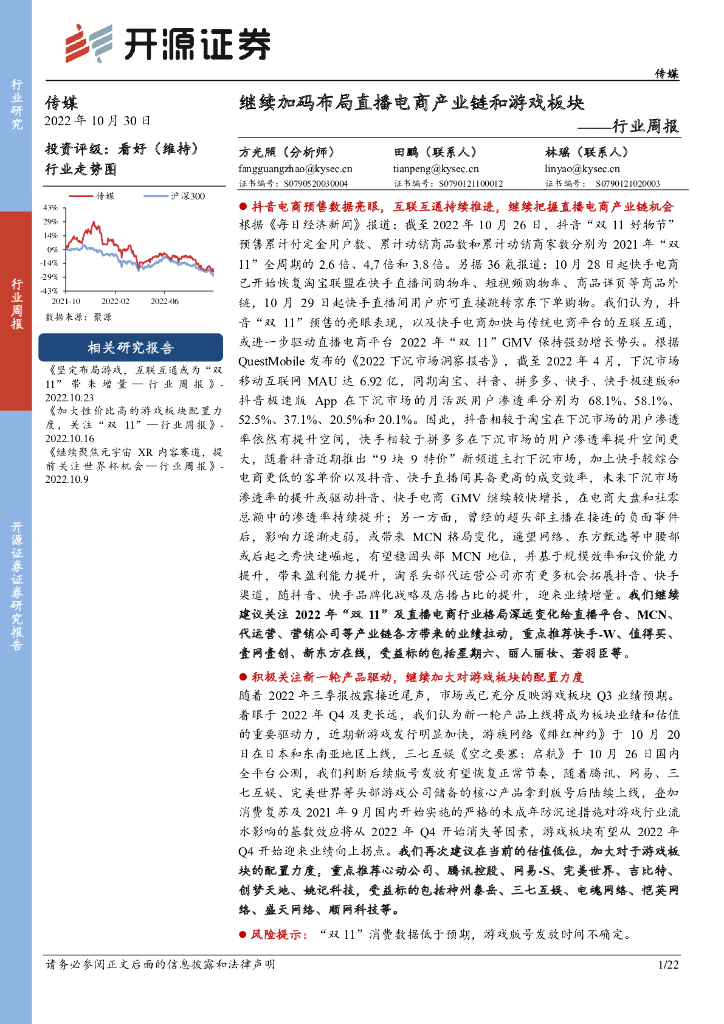 开源证券:传媒行业周报:继续加码布局直播电商产业链和游戏板块.pdf