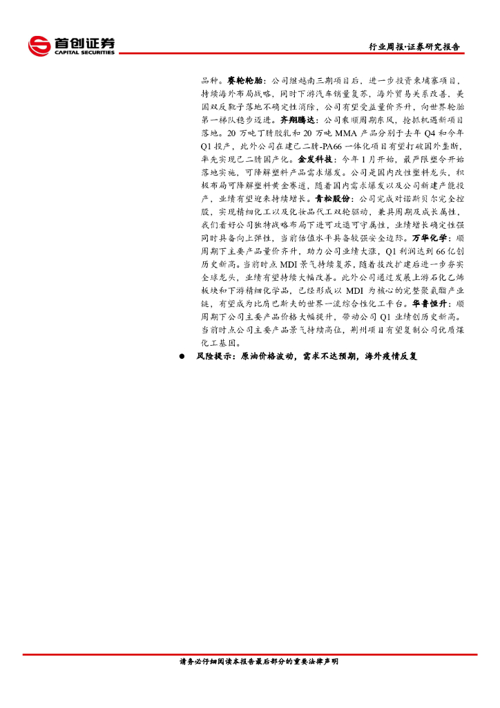 首创证券:化工行业周报:周期行情持续分化,甄选攻守兼备品种.pdf