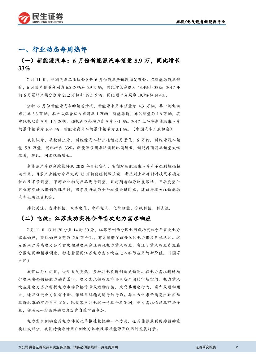 民生证券:电气设备与新能源行业:新能源汽车产销量增长,江苏实施电力需求响应.pdf