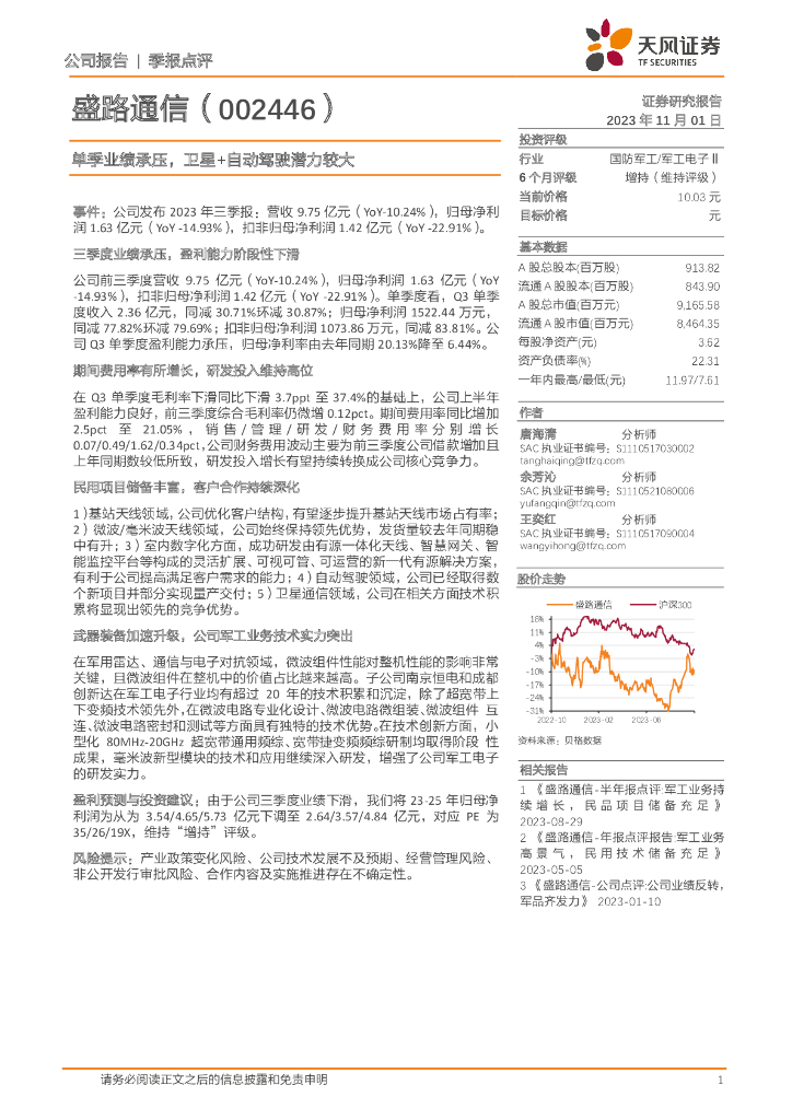 天风证券:盛路通信(002446)-单季业绩承压,卫星+自动驾驶潜力较大.pdf