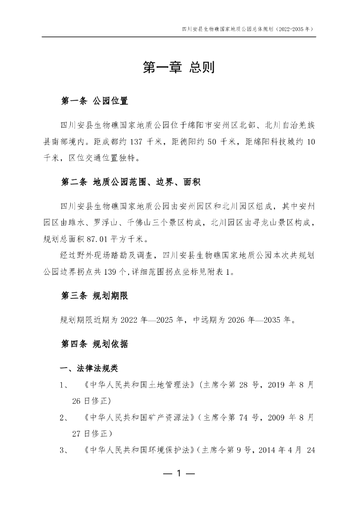 四川安县生物礁国家地质公园总体规划(2022-2035年)文本.pdf