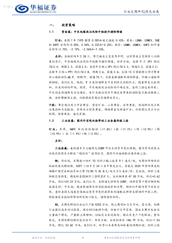 华福证券:有色金属行业周报:国内宏观政策持续加码,商品价格偏强震荡.pdf