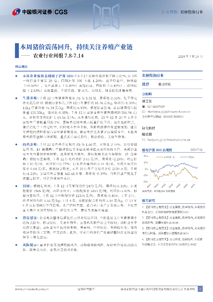 中国银河:农业行业周报:本周猪价震荡回升,持续关注养殖产业链.pdf