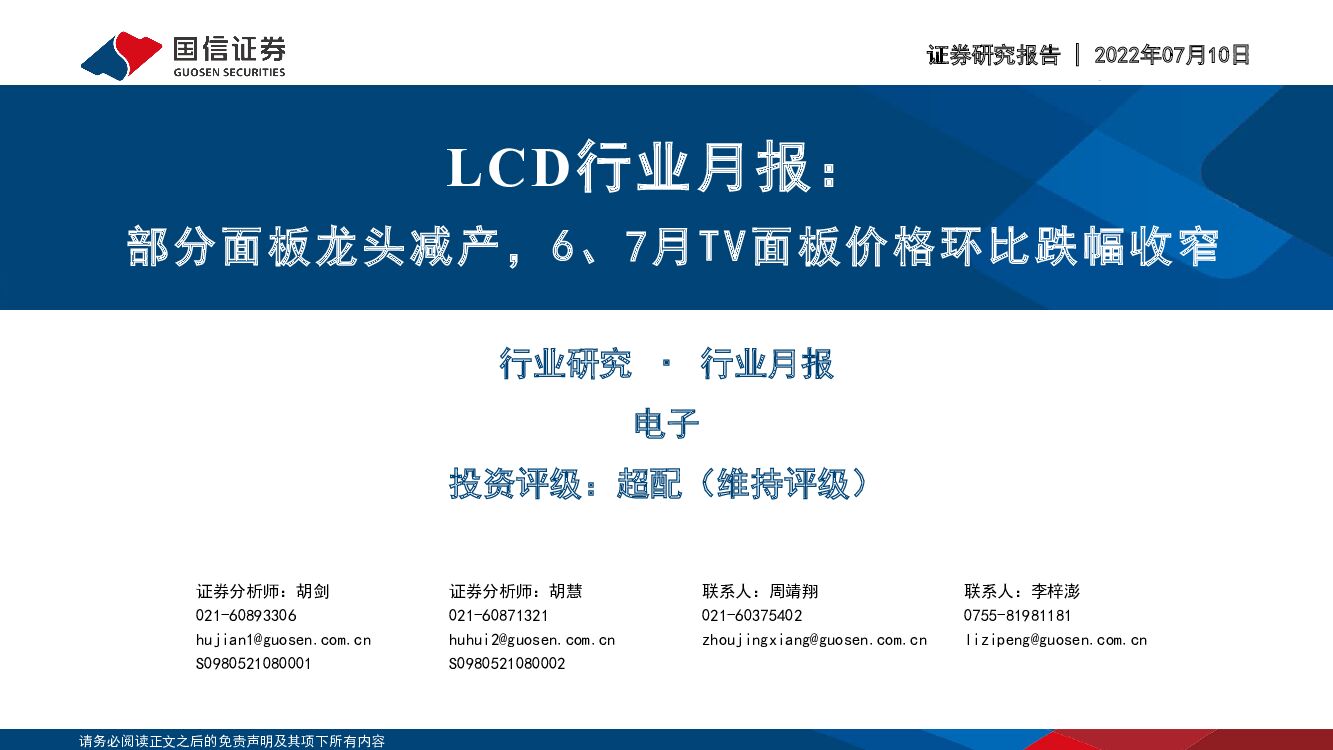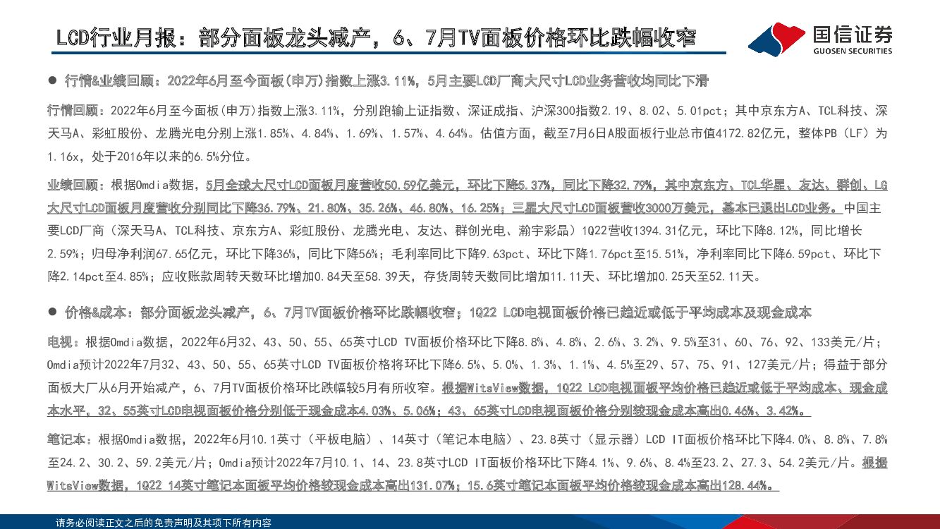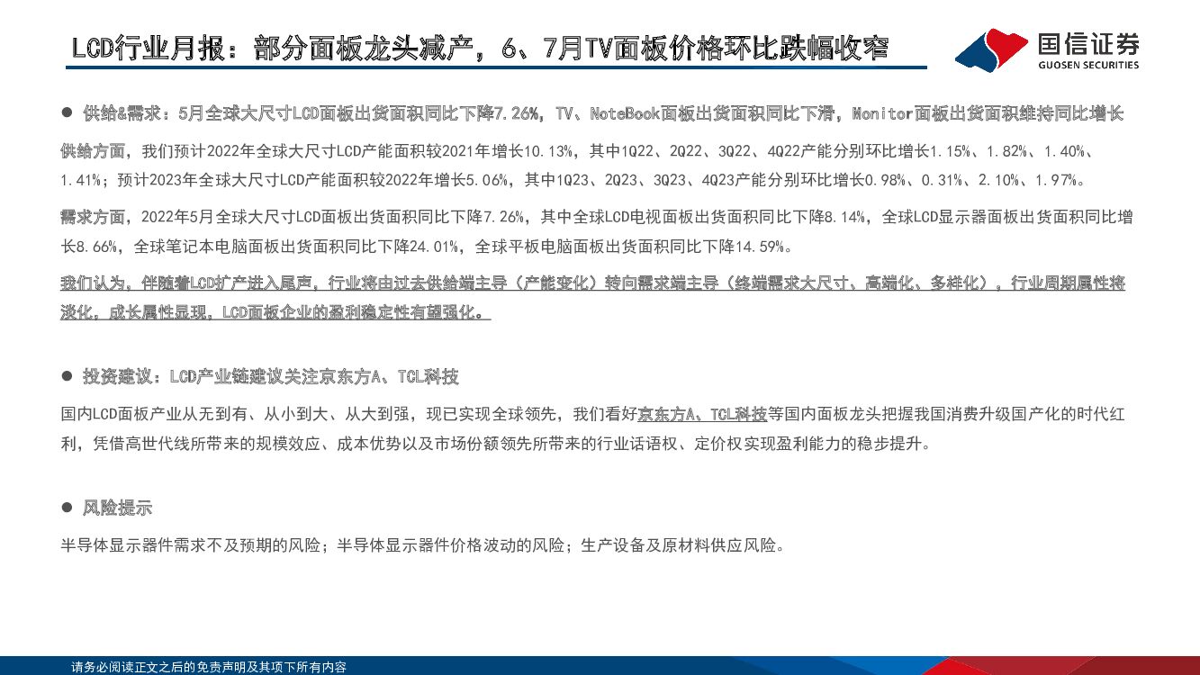 国信证券:LCD行业月报:部分面板龙头减产,6、7月TV面板价格环比跌幅收窄.pdf