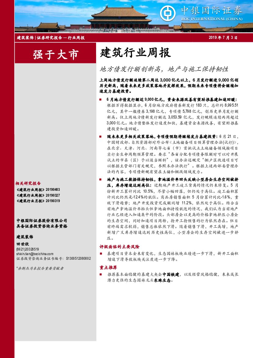 中银国际:建筑行业周报:地方债发行额创新高,地产与施工保持韧性.pdf