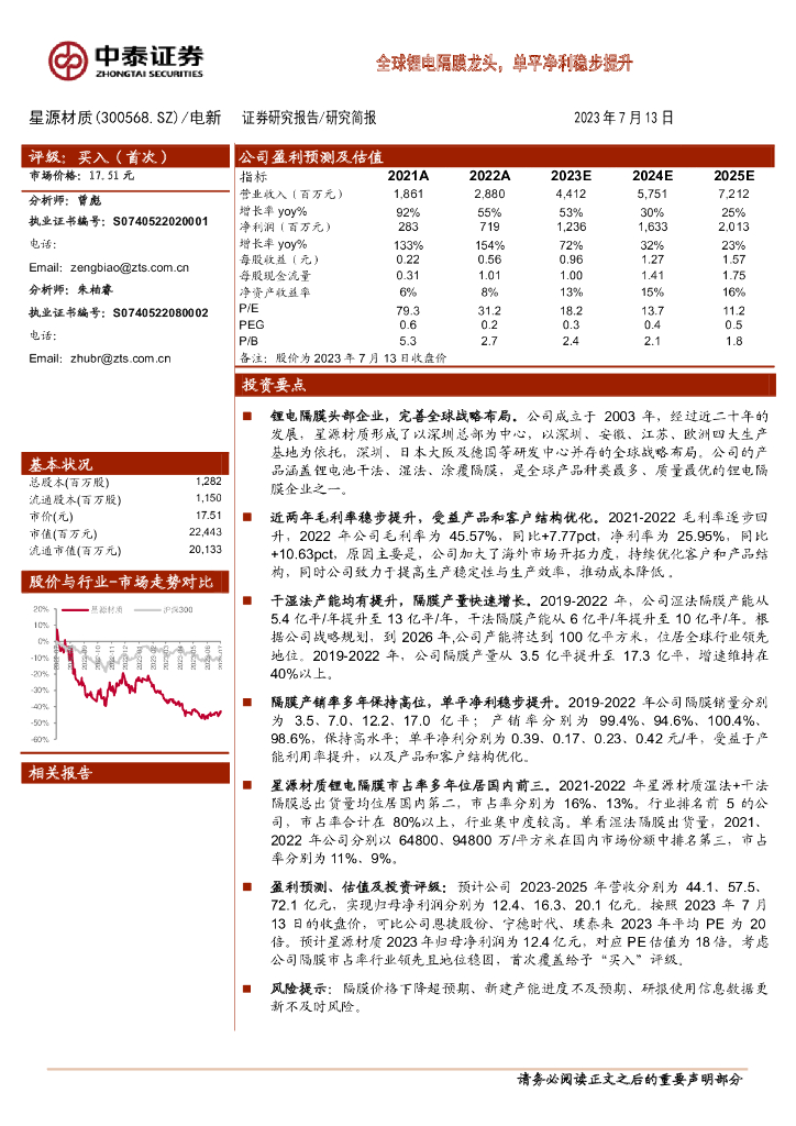 中泰证券:星源材质(300568)-全球锂电隔膜龙头,单平净利稳步提升.pdf